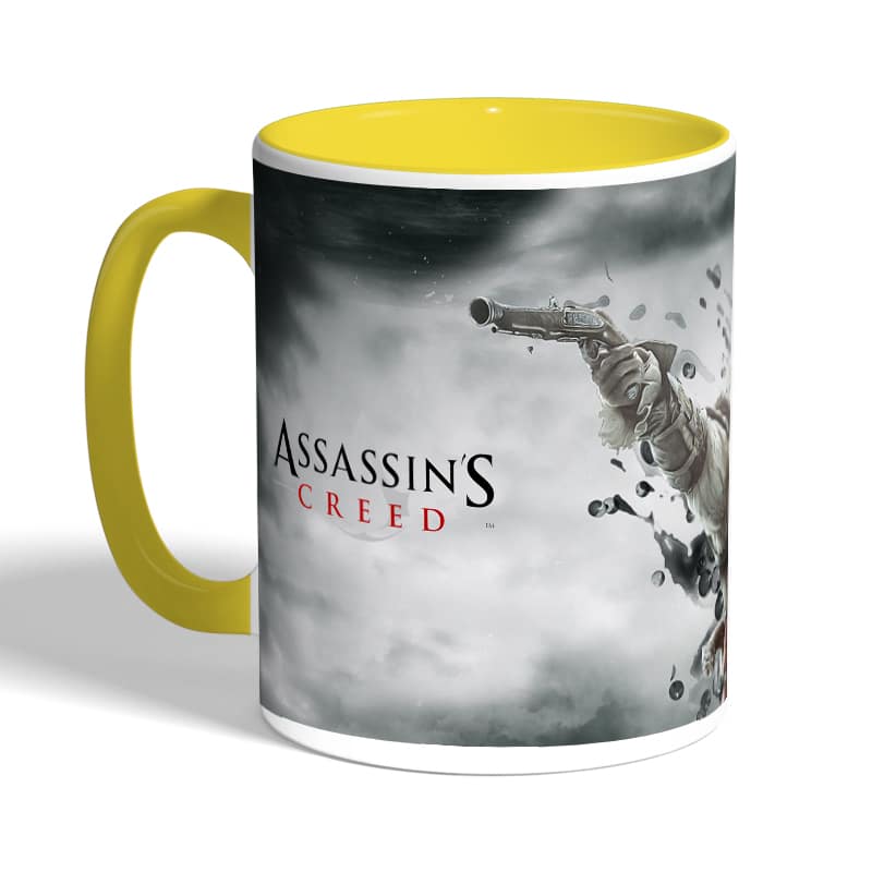 كوب قهوة بمقبض اصفر بتصميم أساسنز كريد مصنوع من السيراميك ذات الجودة العالية المزينة بتصاميم ورسوم ابداعية تعبّر عن تميزك واسلوبك الخاص، اذا كنت تبحث عن هدية مميزة، غير تقليدية لأحبائك وأصدقائك، أو أن تضيف لمسة جمالية الى كوب القهوة الصباحي، أنت إذن في المكان الصحيح.