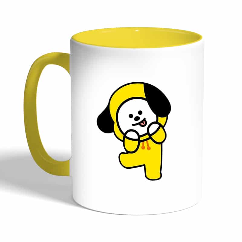 كوب قهوة بمقبض اصفر بتصميم شخصيه شيمي BT21