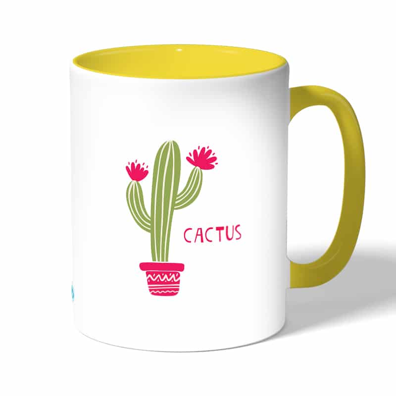 كوب قهوة بمقبض اصفر بتصميم صبار رسم مصنوع من السيراميك ذات الجودة العالية المزينة بتصاميم ورسوم ابداعية تعبّر عن تميزك واسلوبك الخاص، اذا كنت تبحث عن هدية مميزة، غير تقليدية لأحبائك وأصدقائك، أو أن تضيف لمسة جمالية الى كوب القهوة الصباحي، أنت إذن في المكان الصحيح.
