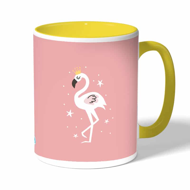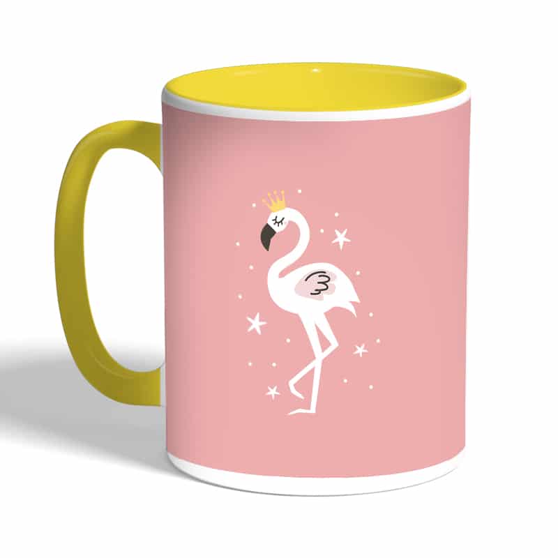 كوب قهوة بمقبض اصفر بتصميم فلامنجو بتاج