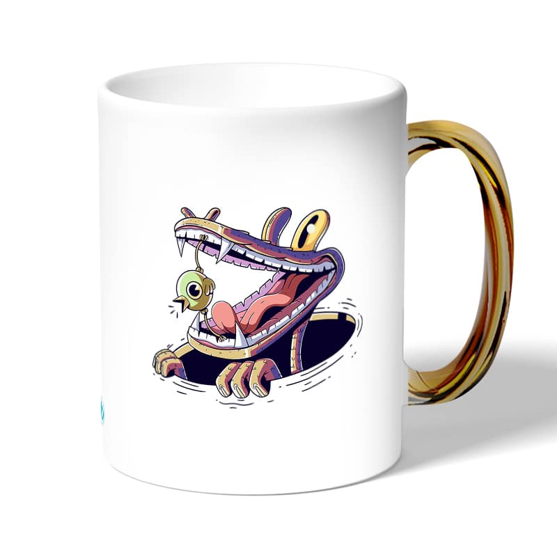 كوب قهوة بمقبض ذهبي بتصميم التمساح والصوص مصنوع من السيراميك ذات الجودة العالية المزينة بتصاميم ورسوم ابداعية تعبّر عن تميزك واسلوبك الخاص، اذا كنت تبحث عن هدية مميزة، غير تقليدية لأحبائك وأصدقائك، أو أن تضيف لمسة جمالية الى كوب القهوة الصباحي، أنت إذن في المكان الصحيح.