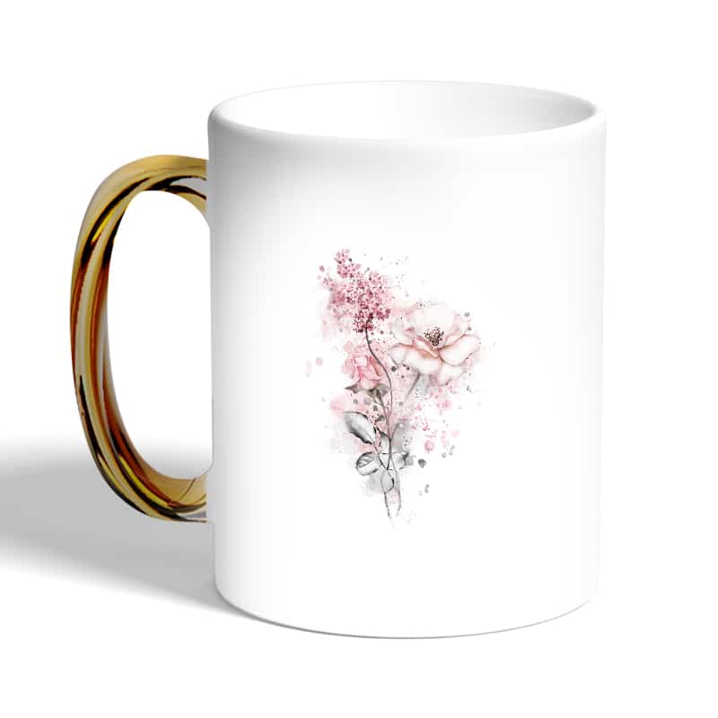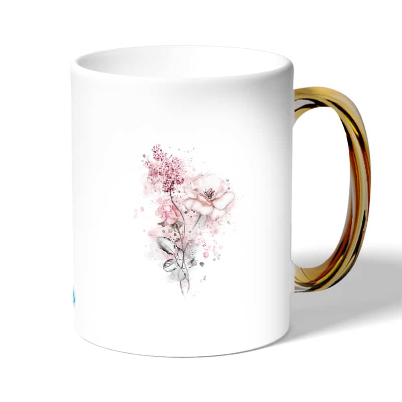 كوب قهوة بمقبض ذهبي بتصميم رسمه ورده مصنوع من السيراميك ذات الجودة العالية المزينة بتصاميم ورسوم ابداعية تعبّر عن تميزك واسلوبك الخاص، اذا كنت تبحث عن هدية مميزة، غير تقليدية لأحبائك وأصدقائك، أو أن تضيف لمسة جمالية الى كوب القهوة الصباحي، أنت إذن في المكان الصحيح.