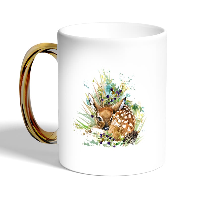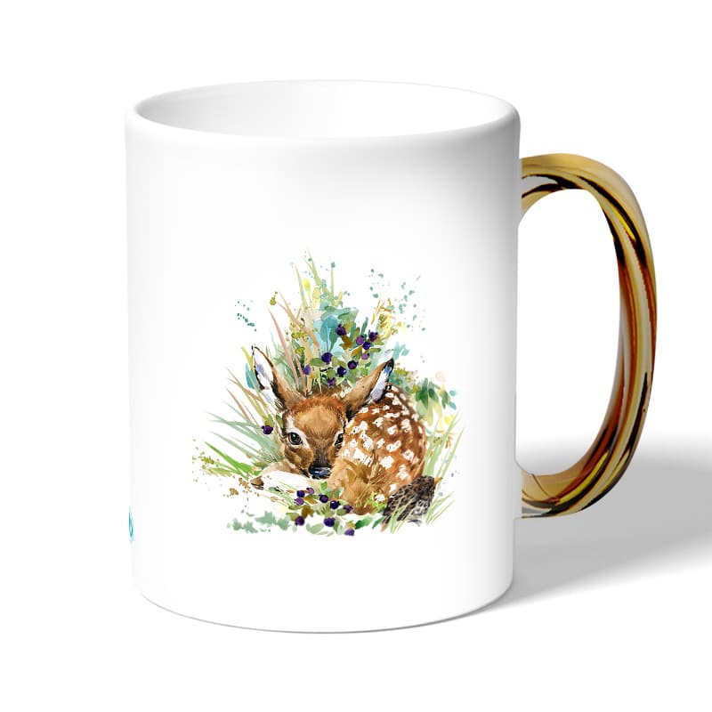 كوب قهوة بمقبض ذهبي بتصميم غزال صغير مصنوع من السيراميك ذات الجودة العالية المزينة بتصاميم ورسوم ابداعية تعبّر عن تميزك واسلوبك الخاص، اذا كنت تبحث عن هدية مميزة، غير تقليدية لأحبائك وأصدقائك، أو أن تضيف لمسة جمالية الى كوب القهوة الصباحي، أنت إذن في المكان الصحيح.