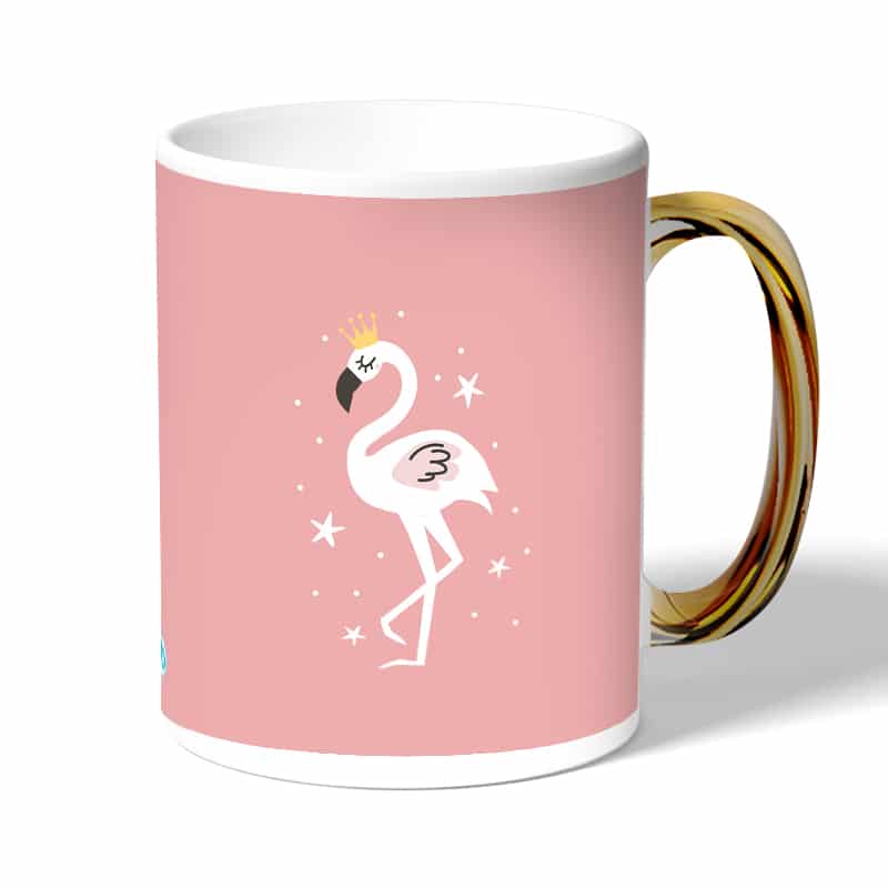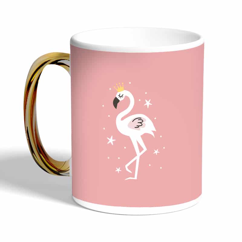 كوب قهوة بمقبض ذهبي بتصميم فلامنجو بتاج مصنوع من السيراميك ذات الجودة العالية المزينة بتصاميم ورسوم ابداعية تعبّر عن تميزك واسلوبك الخاص، اذا كنت تبحث عن هدية مميزة، غير تقليدية لأحبائك وأصدقائك، أو أن تضيف لمسة جمالية الى كوب القهوة الصباحي، أنت إذن في المكان الصحيح.