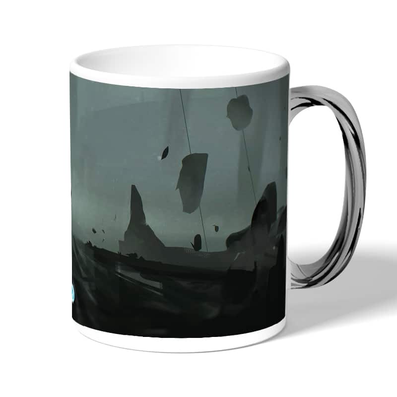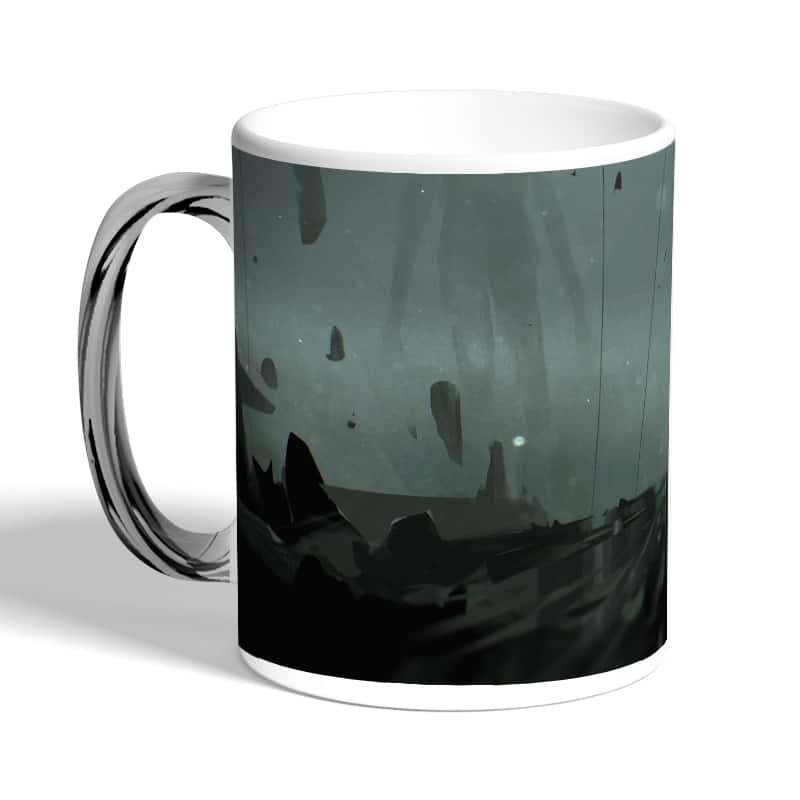 كوب قهوة بمقبض فضي بتصميم حافة العالم ديث ستراندنغ مصنوع من السيراميك ذات الجودة العالية المزينة بتصاميم ورسوم ابداعية تعبّر عن تميزك واسلوبك الخاص، اذا كنت تبحث عن هدية مميزة، غير تقليدية لأحبائك وأصدقائك، أو أن تضيف لمسة جمالية الى كوب القهوة الصباحي، أنت إذن في المكان الصحيح.