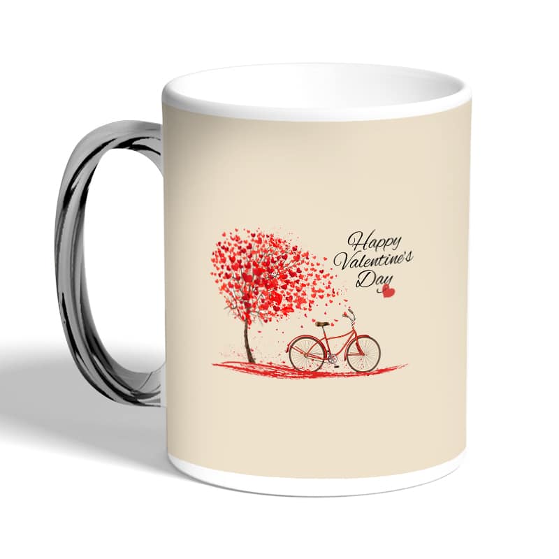 كوب قهوة بمقبض فضي بتصميم عيد حب سعيد مصنوع من السيراميك ذات الجودة العالية المزينة بتصاميم ورسوم ابداعية تعبّر عن تميزك واسلوبك الخاص، اذا كنت تبحث عن هدية مميزة، غير تقليدية لأحبائك وأصدقائك، أو أن تضيف لمسة جمالية الى كوب القهوة الصباحي، أنت إذن في المكان الصحيح.