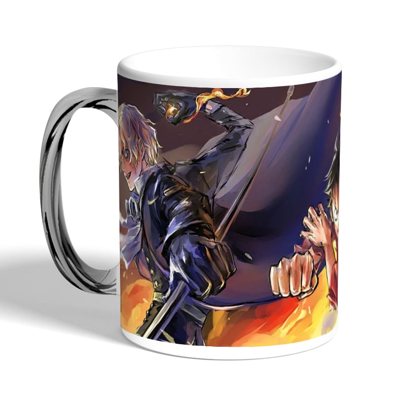 كوب قهوة بمقبض فضي بتصميم لوفي سابو إيس ون بيس مصنوع من السيراميك ذات الجودة العالية المزينة بتصاميم ورسوم ابداعية تعبّر عن تميزك واسلوبك الخاص، اذا كنت تبحث عن هدية مميزة، غير تقليدية لأحبائك وأصدقائك، أو أن تضيف لمسة جمالية الى كوب القهوة الصباحي، أنت إذن في المكان الصحيح.