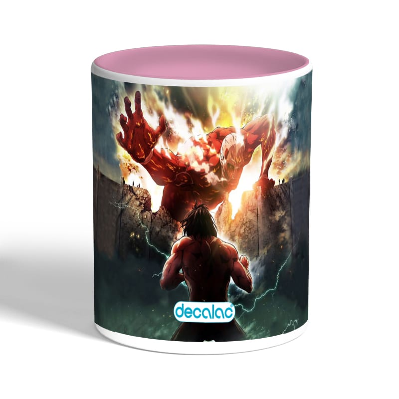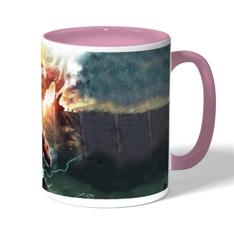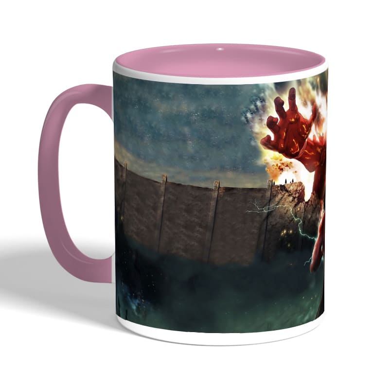كوب قهوة بمقبض وردي بتصميم حرب عملاقان هجوم العمالقة
