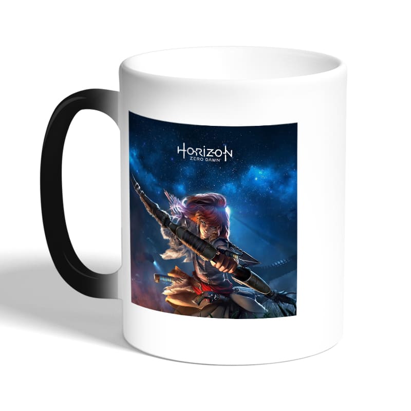 كوب قهوة سحري لون اسود بتصميم الجميله إلوي هوريزن زيرو دون مصنوع من السيراميك ذات الجودة العالية المزينة بتصاميم ورسوم ابداعية تعبّر عن تميزك واسلوبك الخاص، اذا كنت تبحث عن هدية مميزة، غير تقليدية لأحبائك وأصدقائك، أو أن تضيف لمسة جمالية الى كوب القهوة الصباحي، أنت إذن في المكان الصحيح.