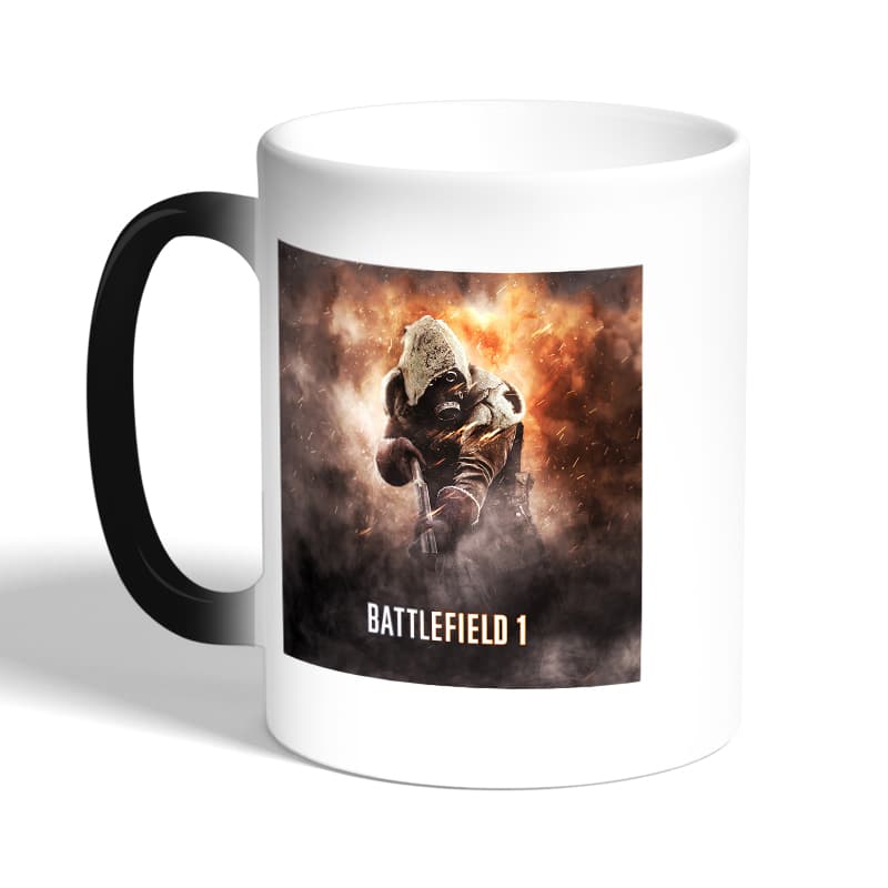كوب قهوة سحري لون اسود بتصميم نداء الواجب باتلفيلد مصنوع من السيراميك ذات الجودة العالية المزينة بتصاميم ورسوم ابداعية تعبّر عن تميزك واسلوبك الخاص، اذا كنت تبحث عن هدية مميزة، غير تقليدية لأحبائك وأصدقائك، أو أن تضيف لمسة جمالية الى كوب القهوة الصباحي، أنت إذن في المكان الصحيح.