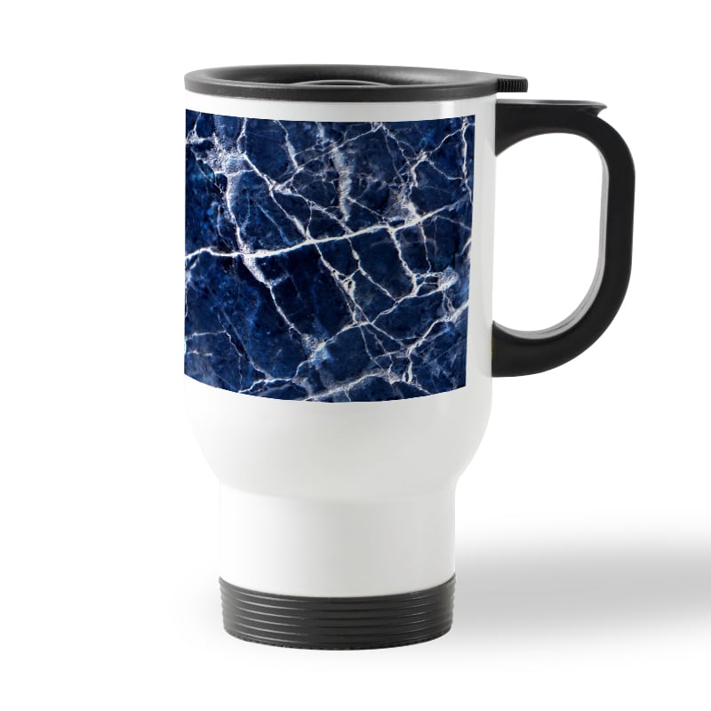 كوب قهوة للسيارة لون ابيض بتصميم أزرق وأبيض من ديكالك، لمسة إبداعية لأكواب القهوة المصنوعة الفولاذ المقاوم للصدأ (ستينليس ستيل)، التي تمت معالجتها لنضمن لكم جودة المنتج وكذلك ثبات الألوان عند غسلها بحيث لا تتعرض للتلاشى.