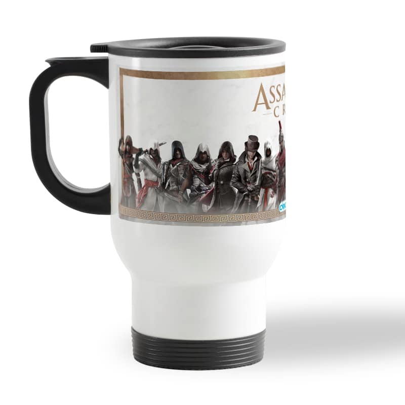 كوب قهوة للسيارة لون ابيض بتصميم أساسنز كريد جميع الشخصيات
