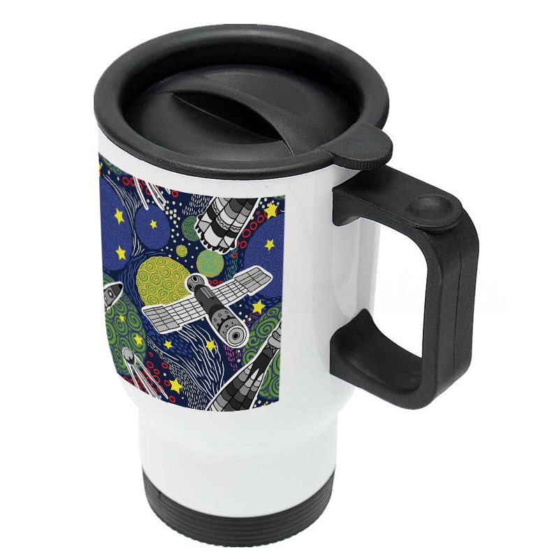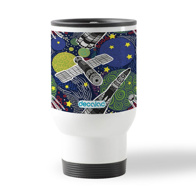 كوب قهوة للسيارة لون ابيض بتصميم الفضاء الخارجي من ديكالك، لمسة إبداعية لأكواب القهوة المصنوعة الفولاذ المقاوم للصدأ (ستينليس ستيل)، التي تمت معالجتها لنضمن لكم جودة المنتج وكذلك ثبات الألوان عند غسلها بحيث لا تتعرض للتلاشى.