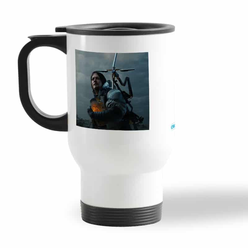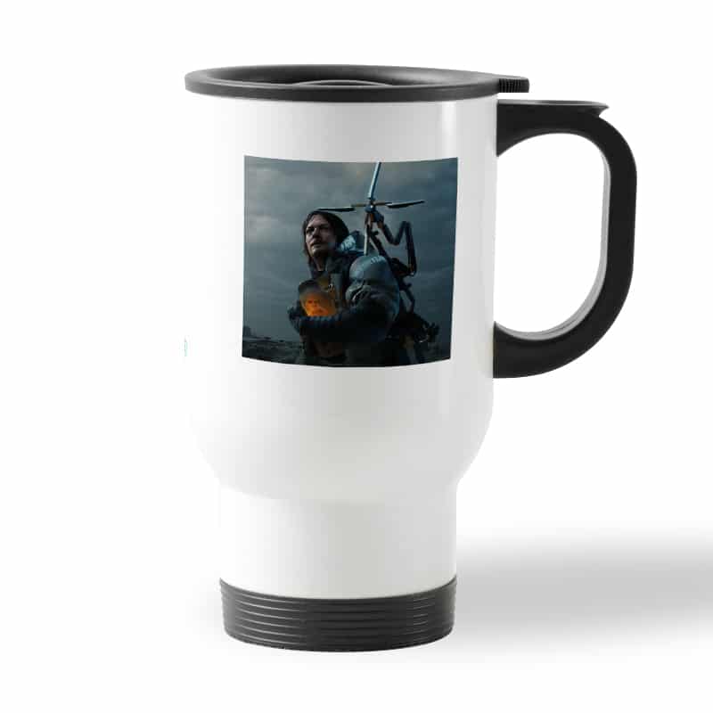 كوب قهوة للسيارة لون ابيض بتصميم سام بريدجز ديث ستراندنغ من ديكالك، لمسة إبداعية لأكواب القهوة المصنوعة الفولاذ المقاوم للصدأ (ستينليس ستيل)، التي تمت معالجتها لنضمن لكم جودة المنتج وكذلك ثبات الألوان عند غسلها بحيث لا تتعرض للتلاشى.