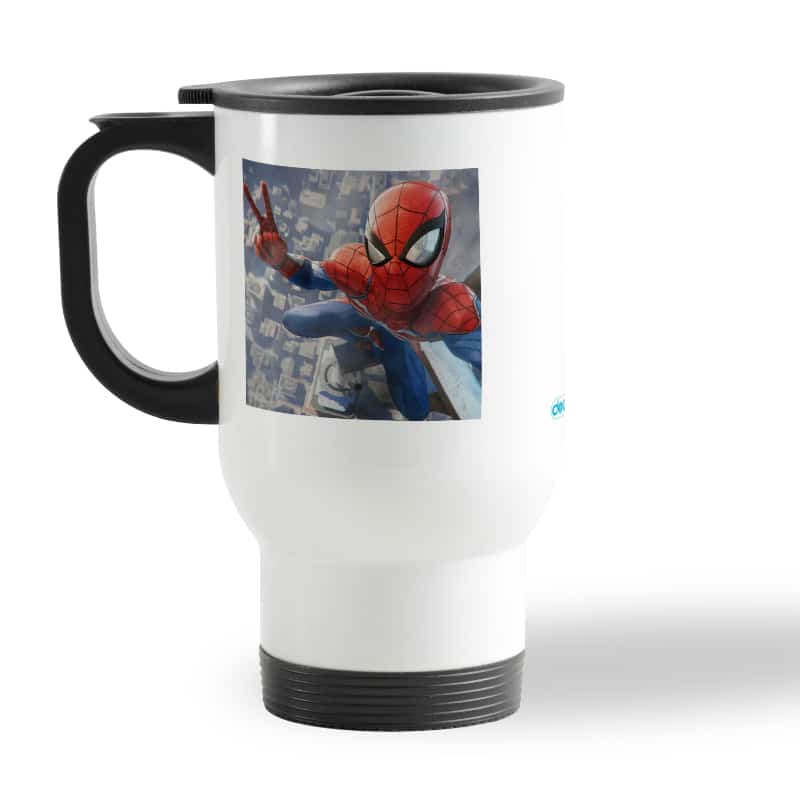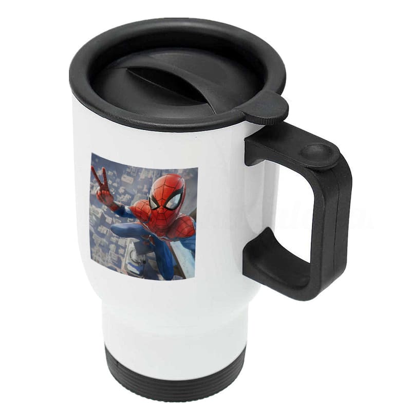 كوب قهوة للسيارة لون ابيض بتصميم سبايدر مان اعلى البرج من ديكالك، لمسة إبداعية لأكواب القهوة المصنوعة الفولاذ المقاوم للصدأ (ستينليس ستيل)، التي تمت معالجتها لنضمن لكم جودة المنتج وكذلك ثبات الألوان عند غسلها بحيث لا تتعرض للتلاشى.