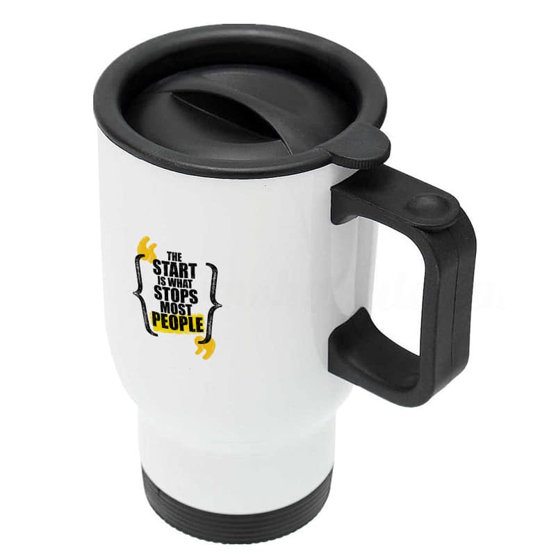 كوب قهوة للسيارة لون ابيض بتصميم عبارات انجليزية من ديكالك، لمسة إبداعية لأكواب القهوة المصنوعة الفولاذ المقاوم للصدأ (ستينليس ستيل)، التي تمت معالجتها لنضمن لكم جودة المنتج وكذلك ثبات الألوان عند غسلها بحيث لا تتعرض للتلاشى.