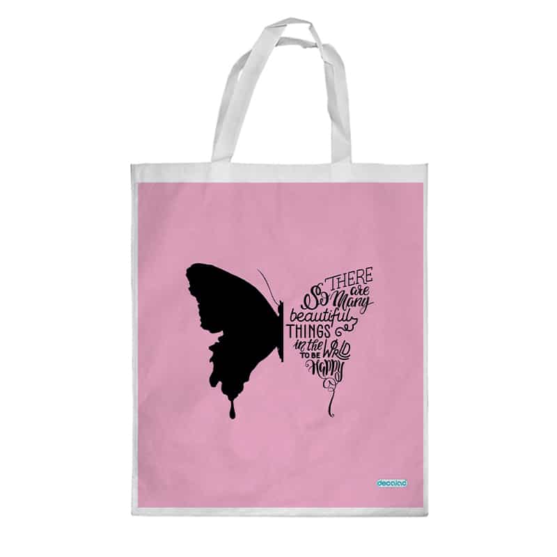 كيس هدايا صغير بتصميم نصف فراشة من ديكالك، كيس تسوق صديق للبيئة، بلمسات رائعة وتصاميم جميلة وأنيقة، وقد ثمت معالجته لنضمن لكم جودة المنتج وكذلك ثبات الألوان عند استخدامها او غسيلها بحيث لا تتلاشى.