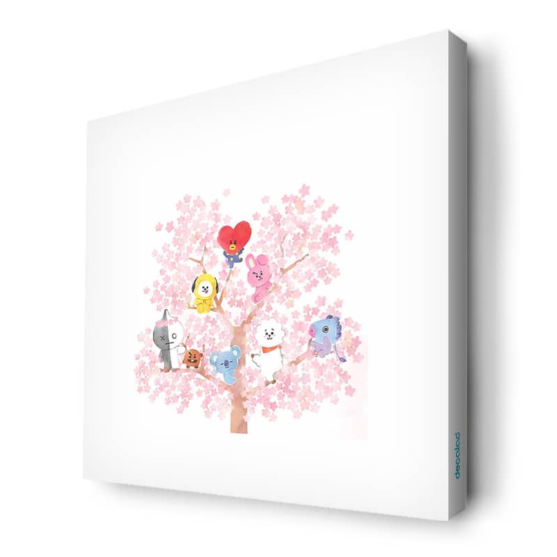 لوحة جدارية قماش كانفس باطار خشبي داخلي بتصميم شجرة الكرز شخصيات BT21