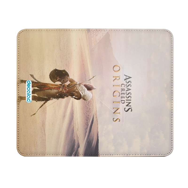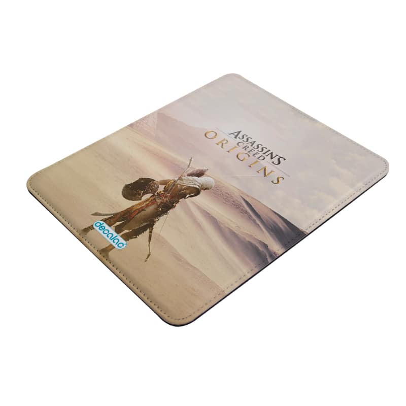 ماوس باد جلدية بتصميم أساسنز كريد أوريجنز من ديكالك، أضف الماوس باد إلى طاولة المكتب لإضافة لمسة إبداعية في غاية الجمال. ماوس باد من ديكالك مصنوع من المطاط عالي الجودة، مطبوع بأفضل التقنيات المتطورة ليظهر العمل الفني بألوان عالية الدقة والوضوح.