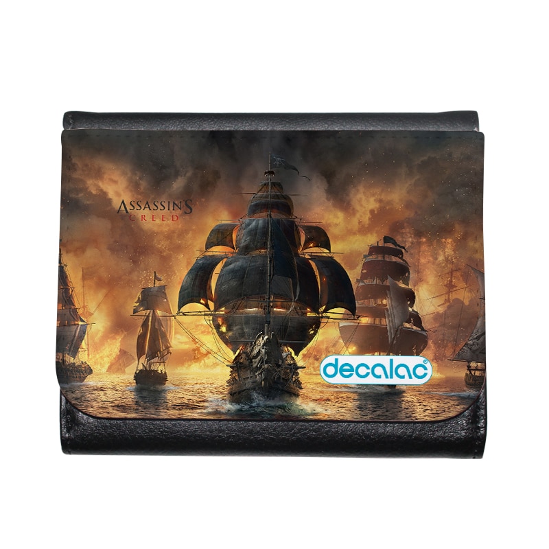 محفظة جلد بتصميم أساسنز كريد بلاك فلاغ من ديكالك، محفظة تتميز بمساحة مناسبة لحفظ متطلباتك الشخصية، ولحفظ الكروت والبطاقات الخاصة بك، مصنوعة من الجلد والقماش المعالج لنضمن لكم جودة المنتج وثبات الألوان كذلك عند استخدامه بحيث لا يتعرض للتلاشى.