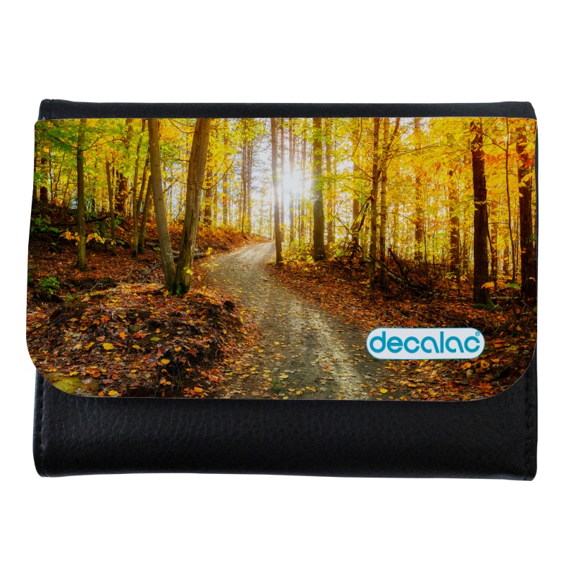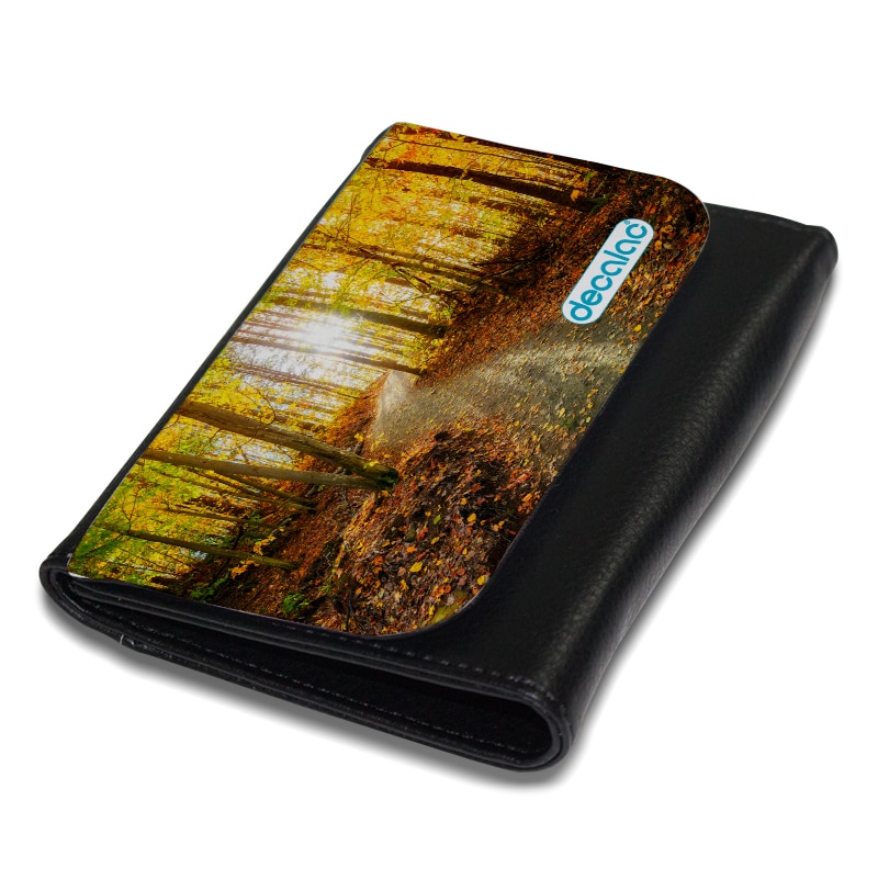 محفظة جلد بتصميم أوراق الخريف من ديكالك، محفظة تتميز بمساحة مناسبة لحفظ متطلباتك الشخصية، ولحفظ الكروت والبطاقات الخاصة بك، مصنوعة من الجلد والقماش المعالج لنضمن لكم جودة المنتج وثبات الألوان كذلك عند استخدامه بحيث لا يتعرض للتلاشى.