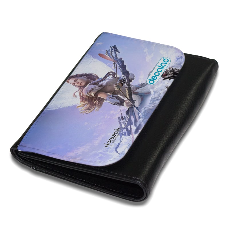 محفظة جلد بتصميم الصيّادة إلوي هورايزن زيرو داون من ديكالك، محفظة تتميز بمساحة مناسبة لحفظ متطلباتك الشخصية، ولحفظ الكروت والبطاقات الخاصة بك، مصنوعة من الجلد والقماش المعالج لنضمن لكم جودة المنتج وثبات الألوان كذلك عند استخدامه بحيث لا يتعرض للتلاشى.