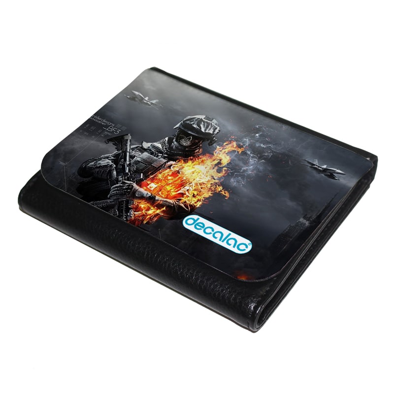 محفظة جلد بتصميم باتلفيلد 3 من ديكالك، محفظة تتميز بمساحة مناسبة لحفظ متطلباتك الشخصية، ولحفظ الكروت والبطاقات الخاصة بك، مصنوعة من الجلد والقماش المعالج لنضمن لكم جودة المنتج وثبات الألوان كذلك عند استخدامه بحيث لا يتعرض للتلاشى.