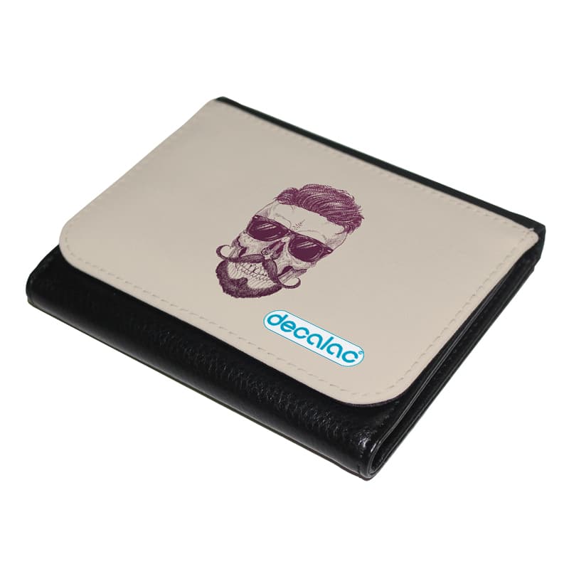 محفظة جلد بتصميم جمجمه انيقه من ديكالك، محفظة تتميز بمساحة مناسبة لحفظ متطلباتك الشخصية، ولحفظ الكروت والبطاقات الخاصة بك، مصنوعة من الجلد والقماش المعالج لنضمن لكم جودة المنتج وثبات الألوان كذلك عند استخدامه بحيث لا يتعرض للتلاشى.