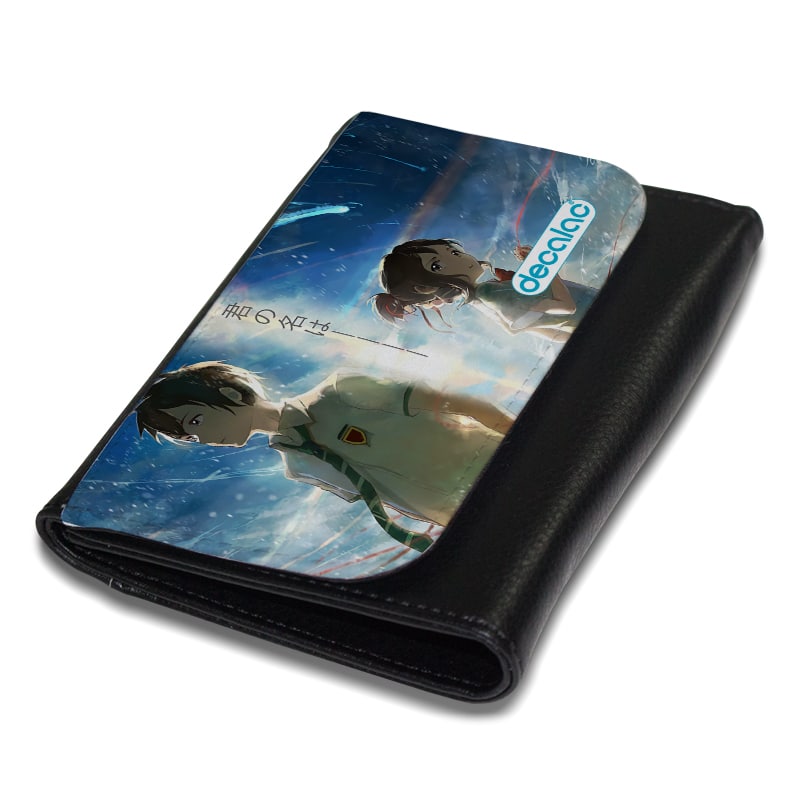 محفظة جلد بتصميم خيوط جمعتنا معا انمي من ديكالك، محفظة تتميز بمساحة مناسبة لحفظ متطلباتك الشخصية، ولحفظ الكروت والبطاقات الخاصة بك، مصنوعة من الجلد والقماش المعالج لنضمن لكم جودة المنتج وثبات الألوان كذلك عند استخدامه بحيث لا يتعرض للتلاشى.