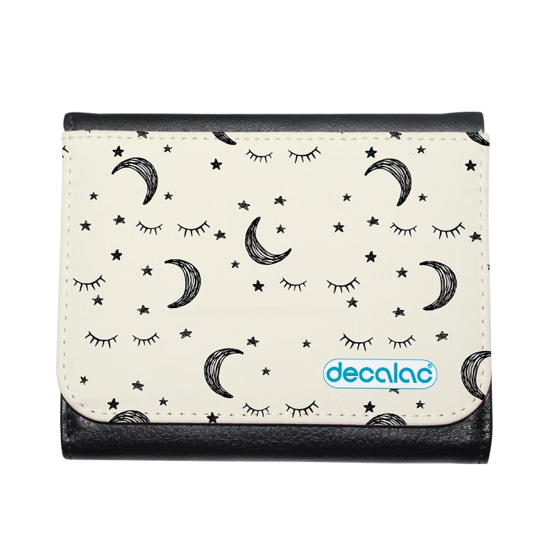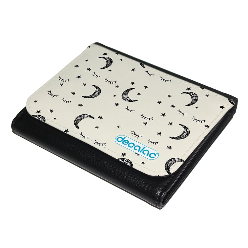 محفظة جلد  بتصميم قمر ونجوم من ديكالك، محفظة تتميز بمساحة مناسبة لحفظ متطلباتك الشخصية، ولحفظ الكروت والبطاقات الخاصة بك، مصنوعة من الجلد والقماش المعالج لنضمن لكم جودة المنتج وثبات الألوان كذلك عند استخدامه بحيث لا يتعرض للتلاشى.