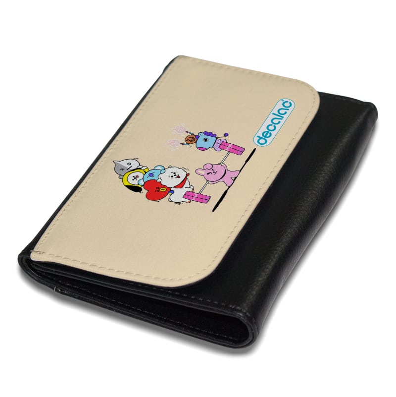 محفظة جلد بتصميم قوه كوكي شخصيات BT21 من ديكالك، محفظة تتميز بمساحة مناسبة لحفظ متطلباتك الشخصية، ولحفظ الكروت والبطاقات الخاصة بك، مصنوعة من الجلد والقماش المعالج لنضمن لكم جودة المنتج وثبات الألوان كذلك عند استخدامه بحيث لا يتعرض للتلاشى.