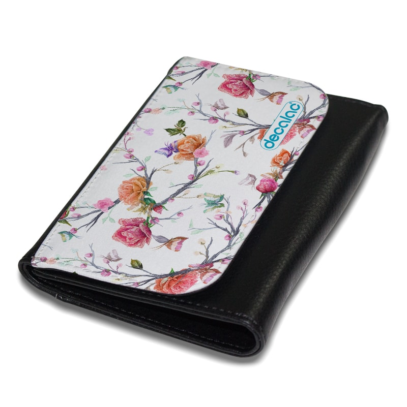 محفظة جلد بتصميم مورد من ديكالك، محفظة تتميز بمساحة مناسبة لحفظ متطلباتك الشخصية، ولحفظ الكروت والبطاقات الخاصة بك، مصنوعة من الجلد والقماش المعالج لنضمن لكم جودة المنتج وثبات الألوان كذلك عند استخدامه بحيث لا يتعرض للتلاشى.