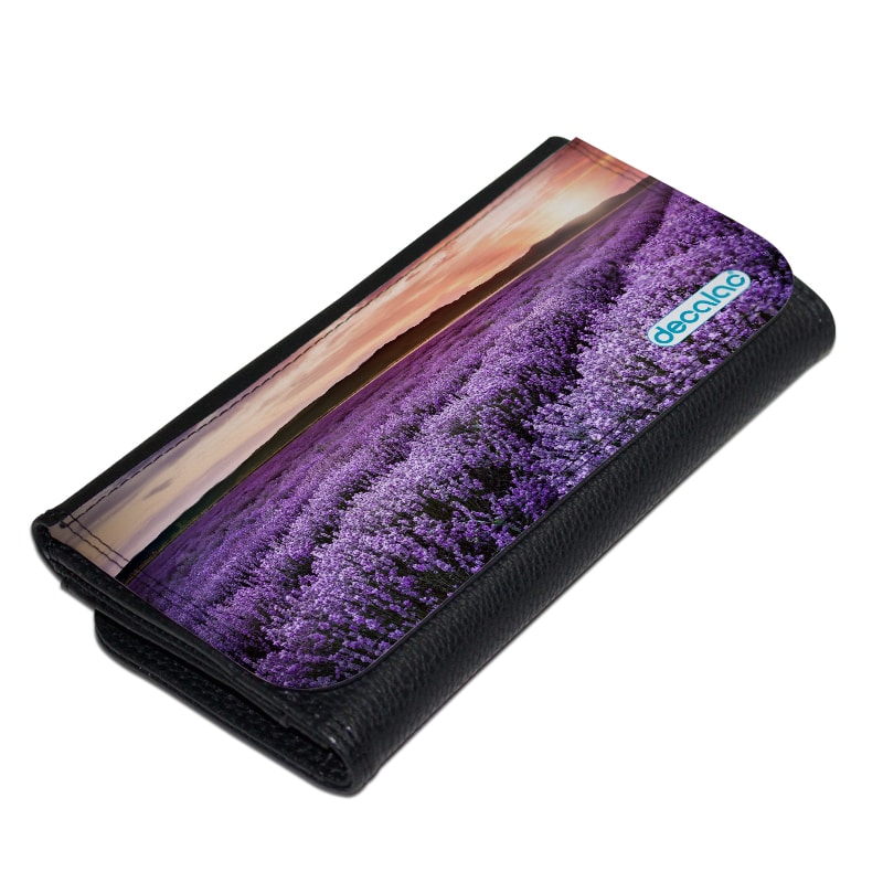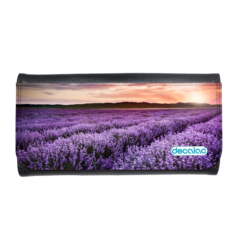 محفظة جلد بتصميم ورود بنفسجيه من ديكالك، محفظة تتميز بمساحة مناسبة لحفظ متطلباتك الشخصية، ولحفظ الكروت والبطاقات الخاصة بك، مصنوعة من الجلد والقماش المعالج لنضمن لكم جودة المنتج وثبات الألوان كذلك عند استخدامه بحيث لا يتعرض للتلاشى.