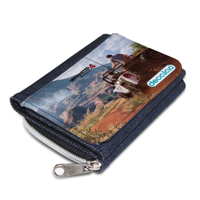 محفظة جينز بتصميم أنشارتد 4: نهاية لص من ديكالك، محفظة جينز تتميز بمساحة مناسبة لحفظ متطلباتك الشخصية، ولحفظ الكروت والبطاقات الخاصة بك، مصنوعة من الجينز والقماش المعالج لنضمن لكم جودة المنتج وكذلك ثبات الألوان عند استخدامه بحيث لا يتعرض للتلاشى.