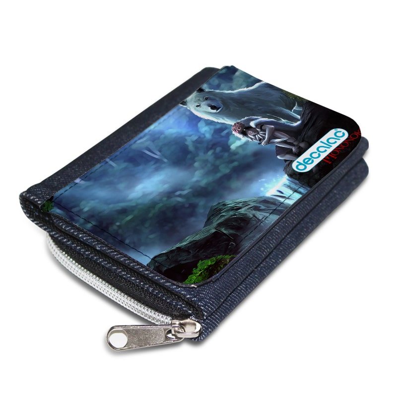 محفظة جينز بتصميم الاميرة مونونوكي مع ذئب من ديكالك، محفظة جينز تتميز بمساحة مناسبة لحفظ متطلباتك الشخصية، ولحفظ الكروت والبطاقات الخاصة بك، مصنوعة من الجينز والقماش المعالج لنضمن لكم جودة المنتج وكذلك ثبات الألوان عند استخدامه بحيث لا يتعرض للتلاشى.