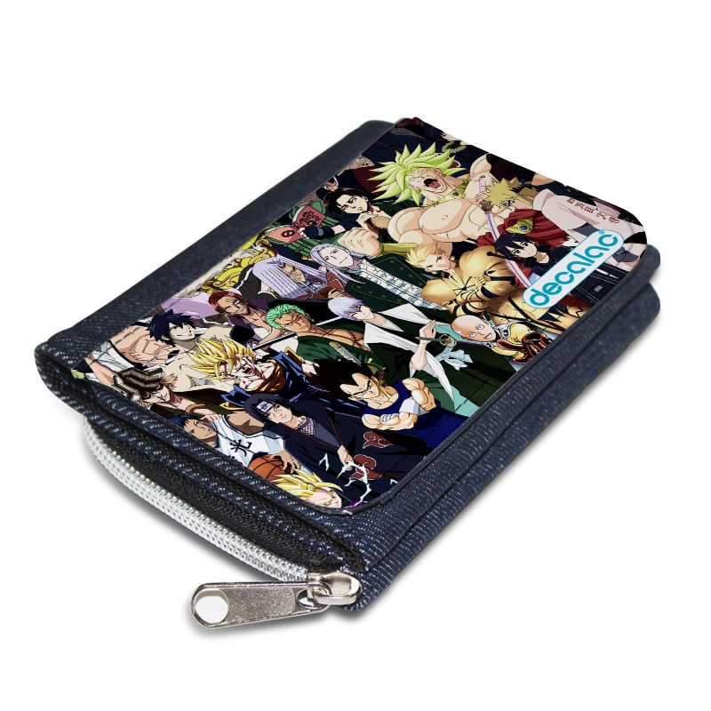 محفظة جينز بتصميم الشخصيات الفخمة كل الانميات من ديكالك، محفظة جينز تتميز بمساحة مناسبة لحفظ متطلباتك الشخصية، ولحفظ الكروت والبطاقات الخاصة بك، مصنوعة من الجينز والقماش المعالج لنضمن لكم جودة المنتج وكذلك ثبات الألوان عند استخدامه بحيث لا يتعرض للتلاشى.