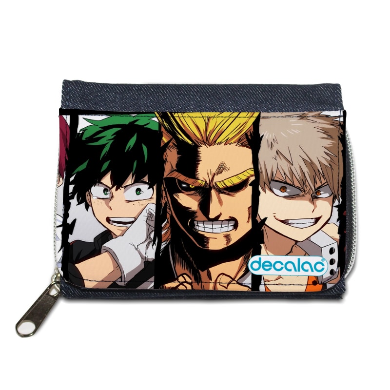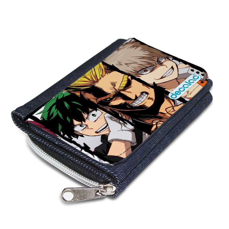 محفظة جينز بتصميم ميدوريا وباكوغو واوول مايت من ديكالك، محفظة جينز تتميز بمساحة مناسبة لحفظ متطلباتك الشخصية، ولحفظ الكروت والبطاقات الخاصة بك، مصنوعة من الجينز والقماش المعالج لنضمن لكم جودة المنتج وكذلك ثبات الألوان عند استخدامه بحيث لا يتعرض للتلاشى.