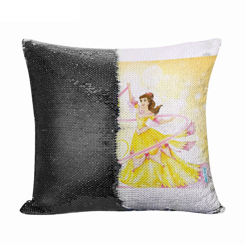 مخدة سحرية مع الحشوة لون اسود بتصميم الاميرة بيلا فيلم الجميلة والوحش من ديكالك، مخدة سحرية بلمسات رائعة وتصاميم أنيقة، مزسنة بالترتر لإضافة لمسة رائعة لمنزلك. وقد تمت معالجة القماش لنضمن لكم جودة المنتج وكذلك ثبات الألوان عند استخدامها او غسيلها بحيث لا تتلاشى.