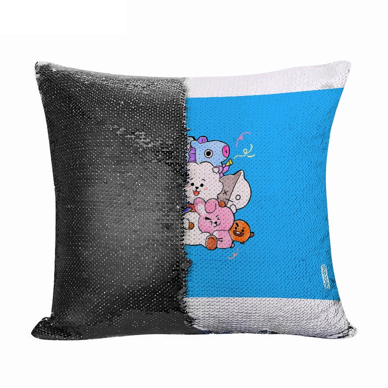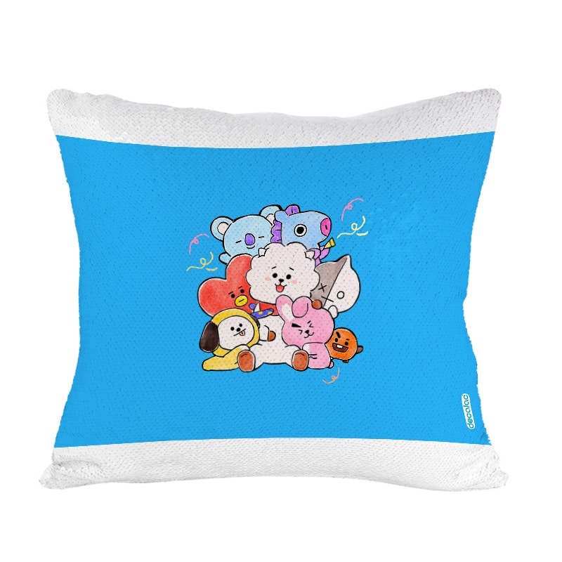 مخدة سحرية مع الحشوة لون اسود بتصميم عناق أر جي شخصيات BT21 من ديكالك، مخدة سحرية بلمسات رائعة وتصاميم أنيقة، مزسنة بالترتر لإضافة لمسة رائعة لمنزلك. وقد تمت معالجة القماش لنضمن لكم جودة المنتج وكذلك ثبات الألوان عند استخدامها او غسيلها بحيث لا تتلاشى.