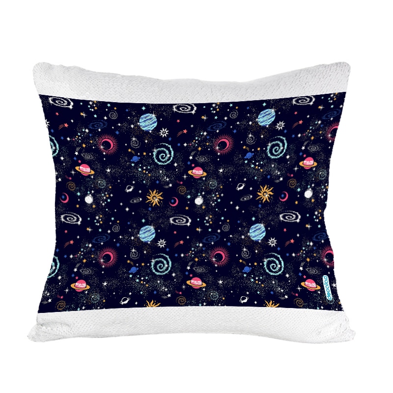 مخدة سحرية مع الحشوة لون ذهبي بتصميم الفضاء والمجرة