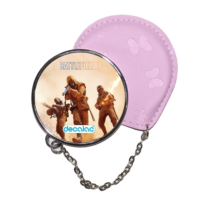 مرآة جيب جلد  دائرية  بتصميم الاستعداد للمعركة  باتلفيلد
