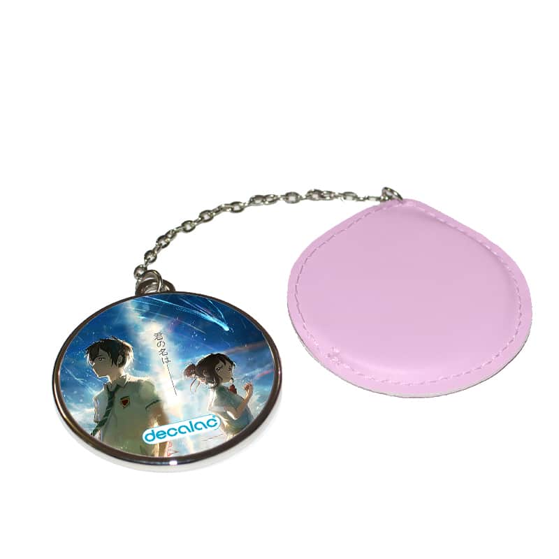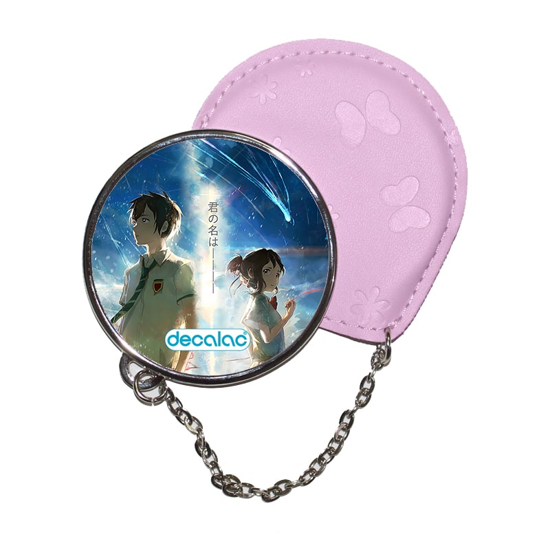 مرآة جيب جلد  دائرية  بتصميم لحظه اللقاء انمي أسمك