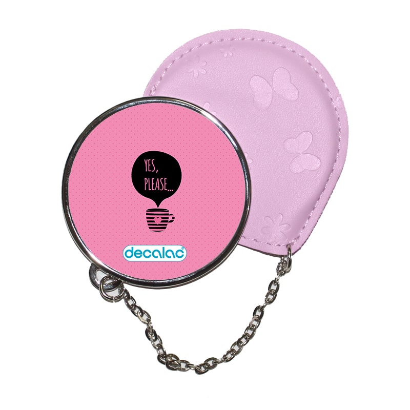 مرآة جيب جلد دائرية بتصميم كوب بعباره من ديكالك، لابد أنك تريد أن تظهر بأفضل ما يكون عندما تكون ذاهباً إلى عملك أو مناسبة خاصة، هذه المرآة صغيرة وعملية بنفس الوقت، تستطيع أن تحتفظ بها في جيبك أو محفظتك، تأتي بتصاميم جميلة تعبر عن أسلوبك الخاص، مصنوعة من الفولاذ المقاوم للصدأ (ستينلس ستيل)، مع غطاء جلدي. وقد تمت معالجتها لنضمن لكم جودة المنتج وكذلك ثبات الألوان عند استخدامها اليومي بحيث لا تتعرض للتلاشى.
