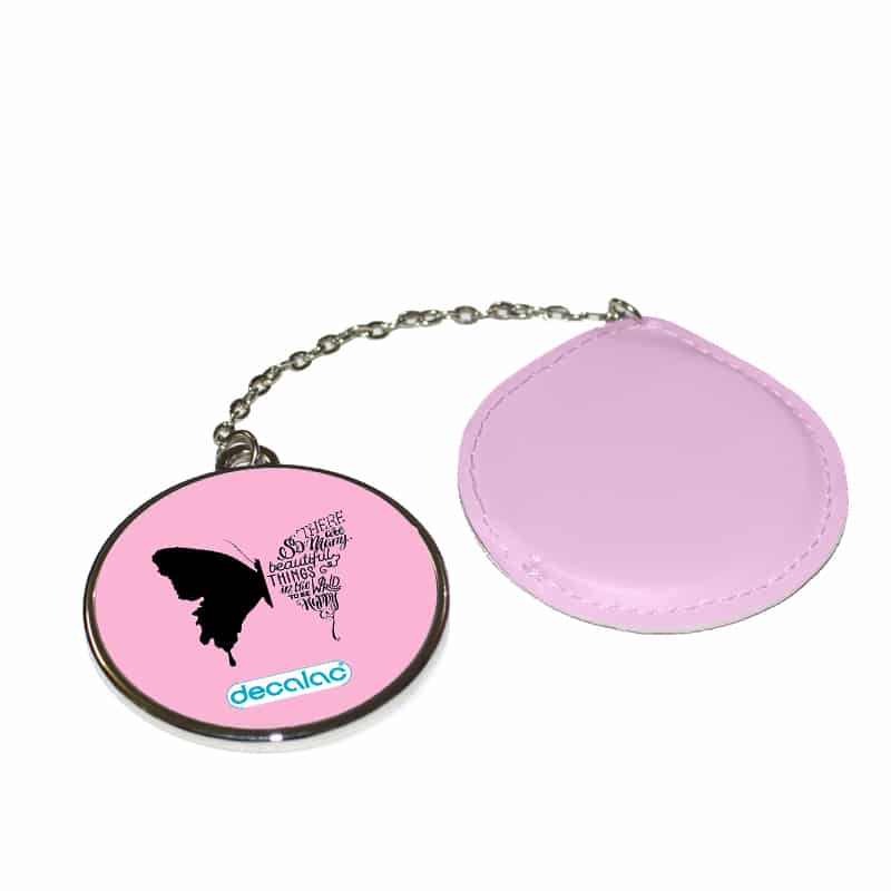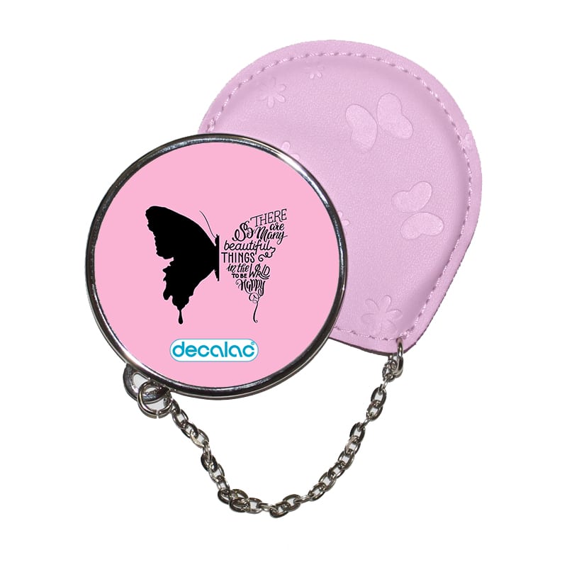 مرآة جيب جلد دائرية بتصميم نصف فراشة من ديكالك، لابد أنك تريد أن تظهر بأفضل ما يكون عندما تكون ذاهباً إلى عملك أو مناسبة خاصة، هذه المرآة صغيرة وعملية بنفس الوقت، تستطيع أن تحتفظ بها في جيبك أو محفظتك، تأتي بتصاميم جميلة تعبر عن أسلوبك الخاص، مصنوعة من الفولاذ المقاوم للصدأ (ستينلس ستيل)، مع غطاء جلدي. وقد تمت معالجتها لنضمن لكم جودة المنتج وكذلك ثبات الألوان عند استخدامها اليومي بحيث لا تتعرض للتلاشى.