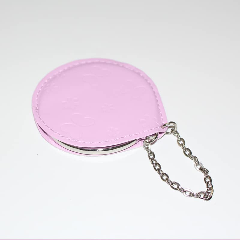 مرآة جيب جلد  دائرية  بتصميم سيدة