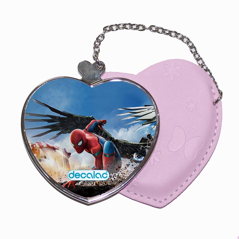 مرآة جيب جلد قلب بتصميم الرجل العنكبوت مارفل