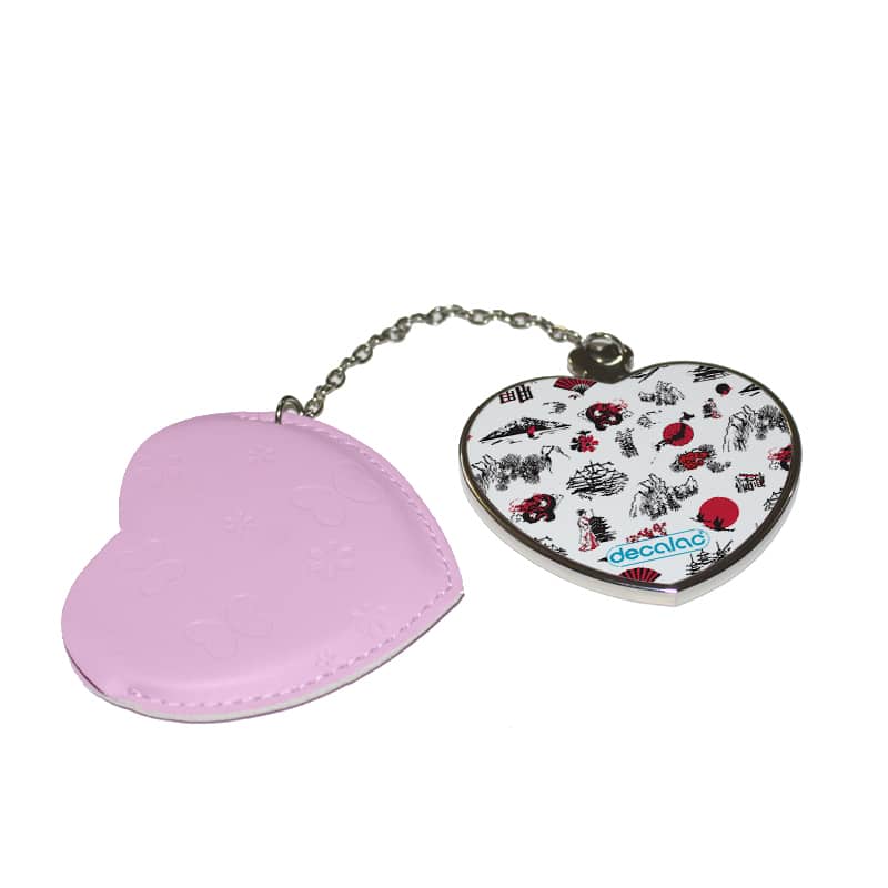 مرآة جيب جلد قلب بتصميم رسومات يابانيه