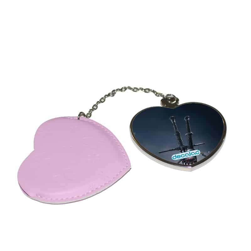 مرآة جيب جلد قلب بتصميم سيف فضي أفعواني من ذا ويتشر 3 وايلد هانت من ديكالك، لابد أنك تريد أن تظهر بأفضل ما يكون عندما تكون ذاهباً إلى عملك أو مناسبة خاصة، هذه المرآة صغيرة وعملية بنفس الوقت، تستطيع أن تحتفظ بها في جيبك أو محفظتك، تأتي بتصاميم جميلة تعبر عن أسلوبك الخاص، مصنوعة من الفولاذ المقاوم للصدأ (ستينلس ستيل)، مع غطاء جلدي. وقد تمت معالجتها لنضمن لكم جودة المنتج وكذلك ثبات الألوان عند استخدامها اليومي بحيث لا تتعرض للتلاشى.