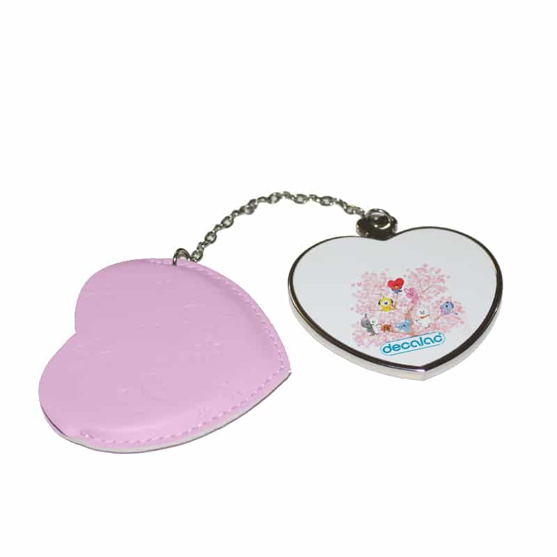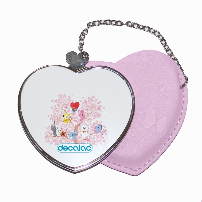 مرآة جيب جلد قلب بتصميم شجرة الكرز شخصيات BT21 من ديكالك، لابد أنك تريد أن تظهر بأفضل ما يكون عندما تكون ذاهباً إلى عملك أو مناسبة خاصة، هذه المرآة صغيرة وعملية بنفس الوقت، تستطيع أن تحتفظ بها في جيبك أو محفظتك، تأتي بتصاميم جميلة تعبر عن أسلوبك الخاص، مصنوعة من الفولاذ المقاوم للصدأ (ستينلس ستيل)، مع غطاء جلدي. وقد تمت معالجتها لنضمن لكم جودة المنتج وكذلك ثبات الألوان عند استخدامها اليومي بحيث لا تتعرض للتلاشى.