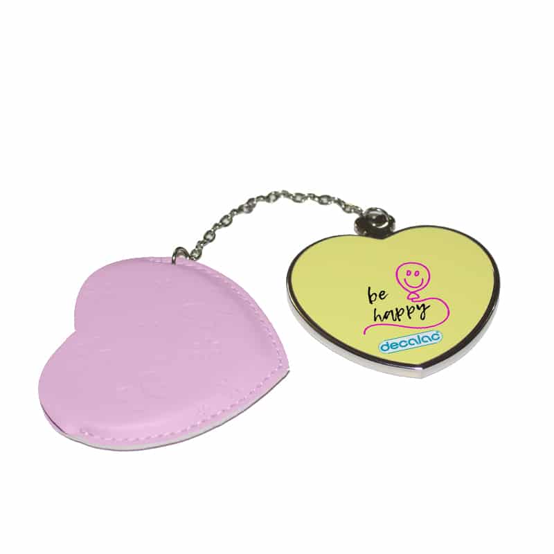 مرآة جيب جلد قلب بتصميم كن سعيد من ديكالك، لابد أنك تريد أن تظهر بأفضل ما يكون عندما تكون ذاهباً إلى عملك أو مناسبة خاصة، هذه المرآة صغيرة وعملية بنفس الوقت، تستطيع أن تحتفظ بها في جيبك أو محفظتك، تأتي بتصاميم جميلة تعبر عن أسلوبك الخاص، مصنوعة من الفولاذ المقاوم للصدأ (ستينلس ستيل)، مع غطاء جلدي. وقد تمت معالجتها لنضمن لكم جودة المنتج وكذلك ثبات الألوان عند استخدامها اليومي بحيث لا تتعرض للتلاشى.